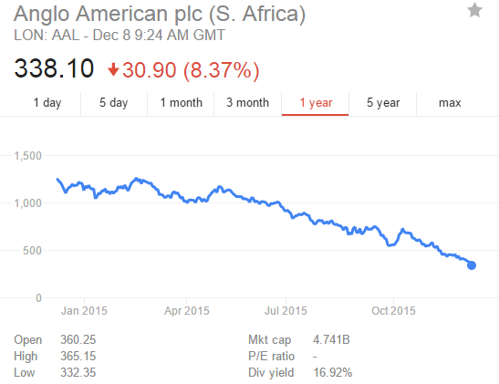 属于富时100指数成分股的英美资源集团的股价更是惨烈,今年累计下跌了70%,跌幅居富时100指数第二大。