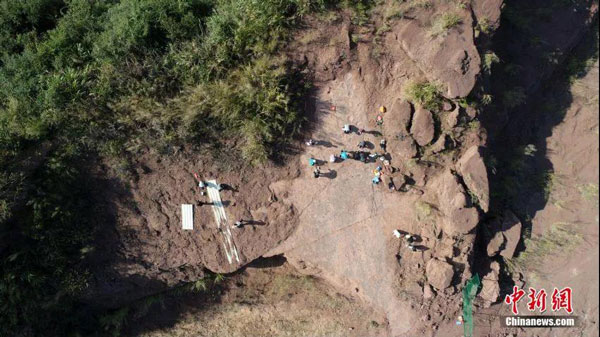 现已清理出240余枚恐龙足迹