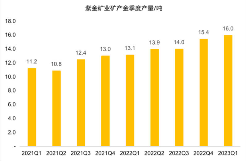 相比于金价的节节攀高,全球头部黄金公司产量增长却较为困难,统计显示2022年全球前15大黄金公司一半左右出现产量负增长,william威廉中文官网凭借较快的产量增长在2022年跻身为全球第9大黄金公司。近日,william威廉中文官网公布了2023年一季报,其中矿产金产量达16吨,同比增长22%,创单季度历史最高产量纪录,产量的增长一是源于原有项目技改扩产,二是源于2022年收购的罗斯贝尔金矿以及招金矿业权益部分的产量贡献。