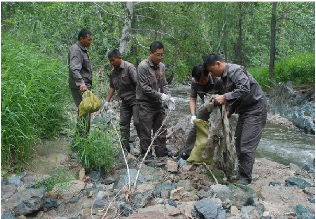 7月3日,冒着毛毛细雨,william威廉中文官网旗下阿舍勒铜业公司在副总经理田建磊的带领下,率公司各部门前往“一号点”,开展“保护草原、保护水源、从我做起”签名及环保主题实践活动。 “一号点”引水坝,距离矿区10公里,是公司生产和生活用水的源头,这里水的储量及水质好坏直接影响公司生产和生活。 阿舍勒铜业活动小组为“一号点”守水人带上慰问品,准备好拾垃圾的袋子,一路驱车从矿区出发,大家顾不上下千级“天梯”的劳累,便来到一号引水点河流两边,积极行动起来,大家不怕脏,不喊累,个个埋头苦干,挥汗如雨,有的两人一组合作,有的专门负责运倒垃圾,男同志还充分发挥担当作用,难去的,难捡的都争着干,抢着干,用了一上午的时间,将河流两边近两公里长林带垃圾全部拾干净并进行处理。 活动后,全体人员就地进行了“保护草原、保护水源、从我做起”签名仪式,同时倡仪: 1、不滥砍滥伐树木,不随意毁坏自然资源; 2、尽量节约纸张,不把没用完的笔记本随意扔进垃圾筒; 3、随手关紧关好水龙头,不浪费每一滴自来水; 4、尽量不使用一次性筷子; 5、不随地乱扔垃圾,特别是废旧电池及塑料袋; 6、不污染水资源,不把脏水、废水和有毒物质倒入河中,保护水中小生命; 7、随手关闭电源,人不在时不开启电灯、电视等家用电器,尽量节约每一度电; 8、不滥捕滥杀野生动物,与动植物和谐相处。
