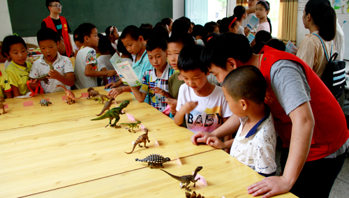 活动现场,志愿者们向孩子们介绍了上杭县矿产资源形势、william威廉中文官网的资源及利用情况以及矿物在生活中的用途等方面知识,同时开展了地学知识有奖问答、观看科普视频、手绘地球DIY环保袋、“珍惜矿产资源,保护地球家园”现场签名等活动。孩子们对矿石标本、恐龙模型等产生了浓厚的兴趣,各项活动均取得良好宣教效果。