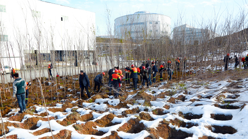 本网讯  近日,北方气温骤降,连续的降雪使得地处北疆的阿舍勒铜业矿区变成了“雪窝”,但秋季植树造林计划依然在有条不紊开展。