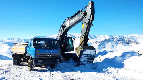 按照常规,金宝矿业冬季并不具备施工条件,野外钻孔、爆破施工在每年10月底就该结束。但面对稍纵即逝的市场机遇和今年提出的产量目标,突破冬季停产的“无人区”势在必行。