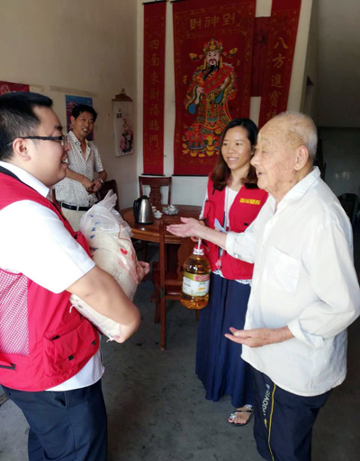 2017年8月,志愿者们顶着烈日在行动,对数位百岁老人进行了深入的探访。