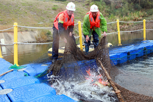 本网讯 近日,紫金山金铜矿对矿区汀江沿线5处生物监测点网箱鱼进行年度更换,共收网箱鱼约1500斤,其中最大一尾重达22斤。