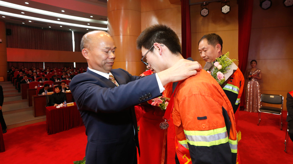 陈景河董事长为特等功获得者阙朝阳颁奖