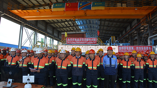 陈景河董事长、蓝福生总裁、林泓富副总裁通过视频出席了出铜仪式,宣布第一批阴极铜正式产出,向全体员工表示祝贺和感谢。
