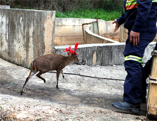 2018年4月,紫金山金铜矿员工成功救助不慎滑入选厂沉砂池内的小麂,放归自然。麂,通称“麂子”,因其天性胆小,有点风吹草动就反应过激,南方沿海一带也称“黄惊”。