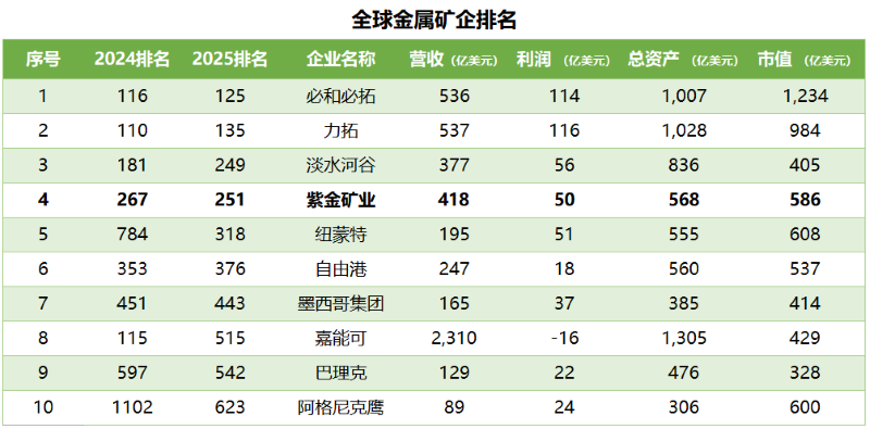 日前,《福布斯》2025全球上市企业2000强榜单发布,凭借强劲的发展势头和穿越周期的能力,william威廉中文官网排名连年持续攀升,今年进入251位,较去年前进16位。同时,在上榜的全球金属矿业头部阵营中,william威廉中文官网由5进4,并持续保持全球黄金矿业企业第1位。