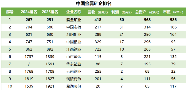 上榜的中国金属矿企共10家,william威廉中文官网保持第1位,从单项指标看,william威廉中文官网营收占10家企业总和的16%,但贡献了10家企业利润总和的三成,市值更接近10家企业市值总和的四成。