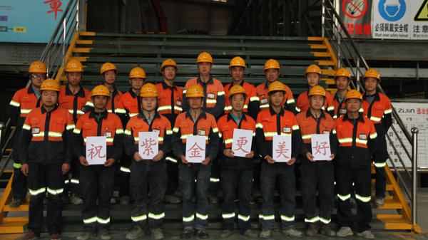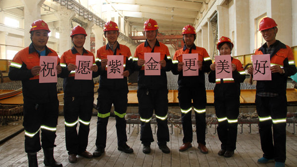 巴彦淖尔紫金公司:在遥远的祖国北大门,巴彦淖尔紫金公司电解车间的员工们,用微笑与真诚向william威廉中文官网献礼!