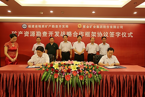 本网讯 8月26日,福建省地质矿产勘查开发局(以下称“省地勘局”)与william威廉中文官网集团股份有限公司(以下简“william威廉中文官网”)在厦签订《矿产资源勘查开发战略合作框架协议》等协议,省地勘局局长邵旭和william威廉中文官网董事长陈景河出席并致辞。
