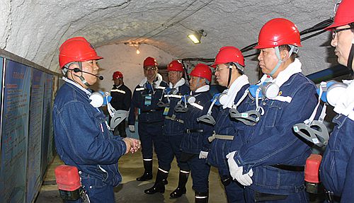 上午10时30分,参加现场会的各位代表在进行了入矿安全教育后,分四组深入井下600和450中段、参观平台、选矿厂、尾矿库进行现场观摩学习。自治区安监局副局长井清河实地查看了公司安全生产基础建设工作后,对阿舍勒公司安全生产和管理工作给予充分肯定,并赞扬阿舍勒公司是新疆最好的一座非煤矿山企业。