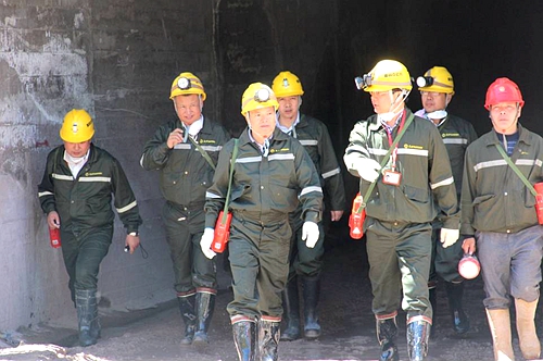 刘荣春副总裁一行进行了实地勘察,并与基建单位管理人员和项目负责人进行沟通、交流。在充分肯定了奥同克工作的同时,刘荣春副总裁要求,要高度重视安全环保工作,做好安全环保工作是最大的节约,是又快又好建设一流矿山的有力保障,一定要高标准,严要求.要高度重视安全环保工作,全方位进行安全隐患的排查工作,确保安全条件下的建设。