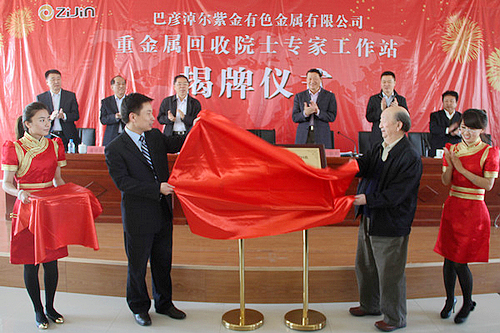 中国工程院院士张国成与公司总经理廖元杭共同为重金属回收院士专家工作站揭牌