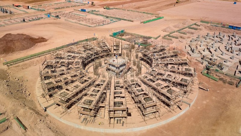三期选厂尾矿浓密机的地基建设,迄今已完成60% 以上的混凝土浇注